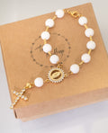 Švelnus ir elegantiškas rankų darbo rožančius, sukurtas iš subtilių onikso akmenukų ir Toho biserio.