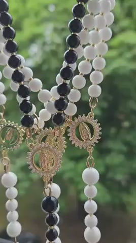 Švelnus ir elegantiškas rankų darbo rožančius, sukurtas iš subtilių onikso akmenukų ir Toho biserio.